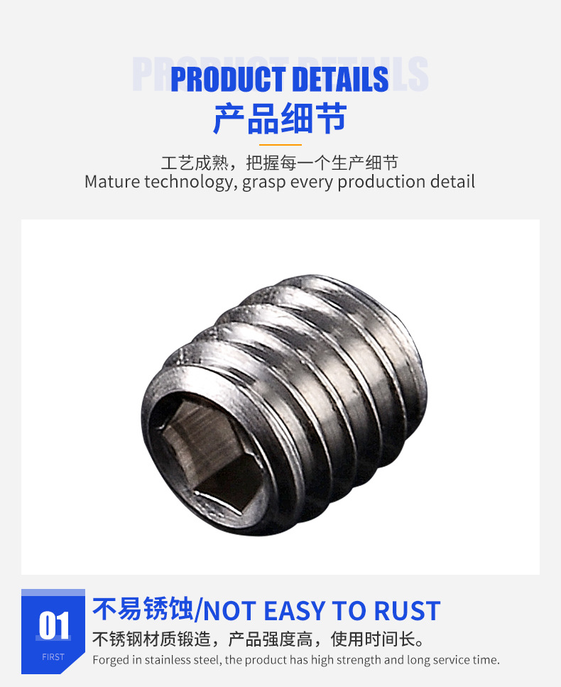 专营:不锈钢紧定螺丝,机米螺丝,止付螺丝,无头螺丝等