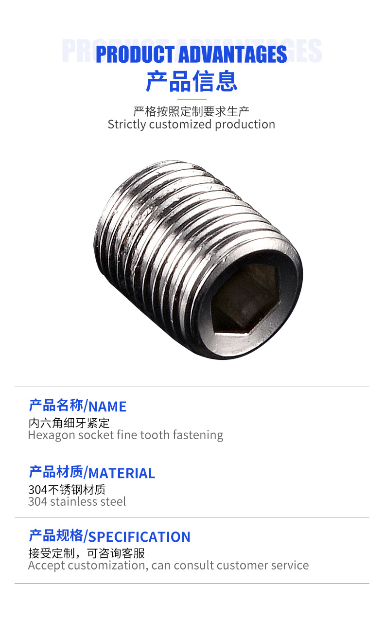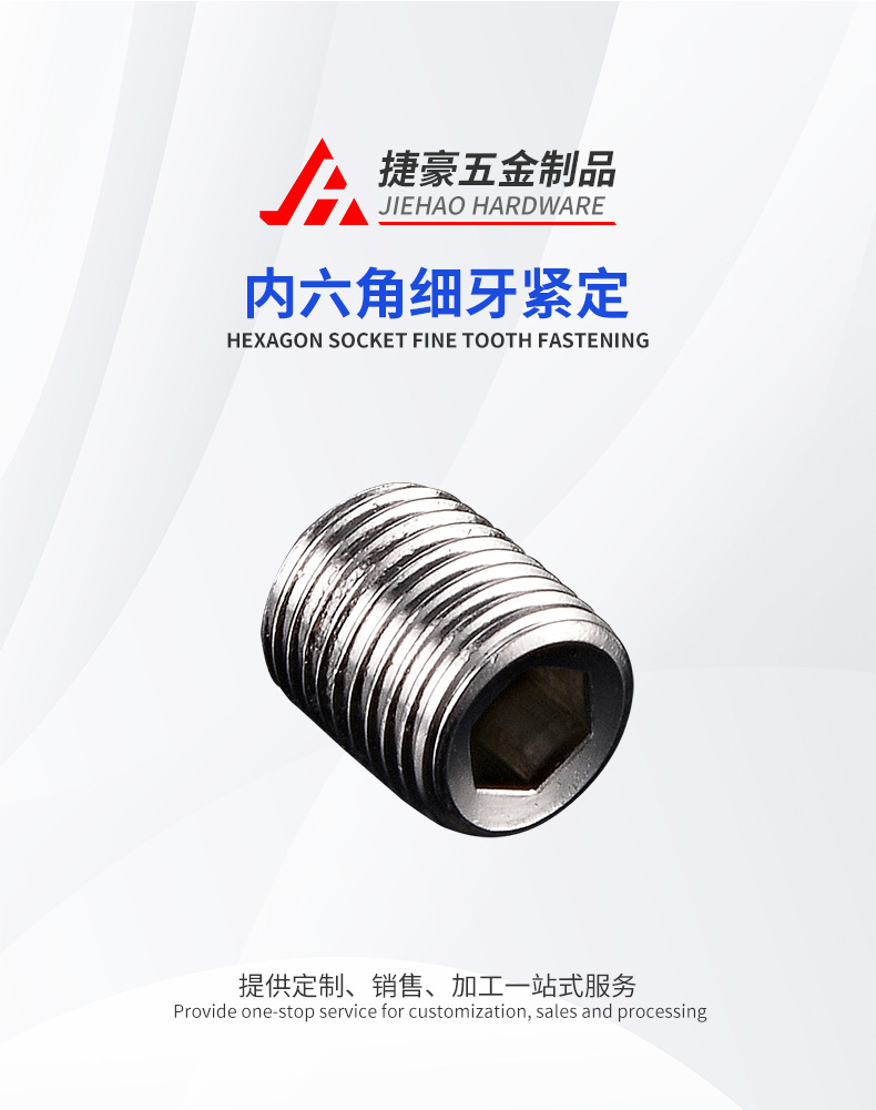 304不锈钢内六角细牙平端紧定螺丝
