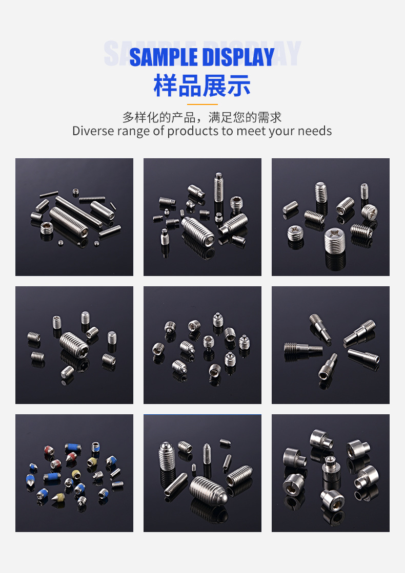 专营:不锈钢紧定螺丝,机米螺丝,止付螺丝,无头螺丝等
